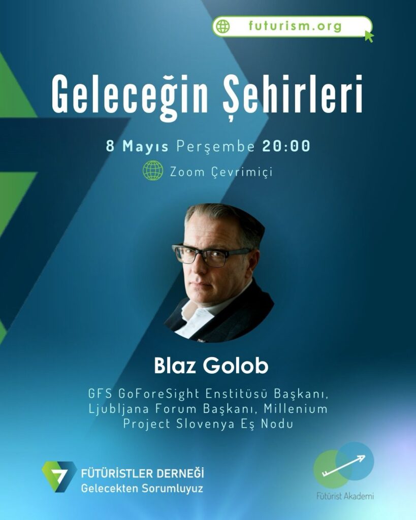 Among the various experts scheduled from the program, Blaz Golob, Chair of the Slovenia Node of the Millennium Project, will lead the fifth session on Thursday, May 8, focusing on “Future Cities” and presenting insights into the evolution of urban landscapes, digital transformation, artificial intelligence, and data-driven decision-making systems. The session will provoke questions about megacities, smart infrastructures, societal adaptation, and strategic foresight in urban planning.