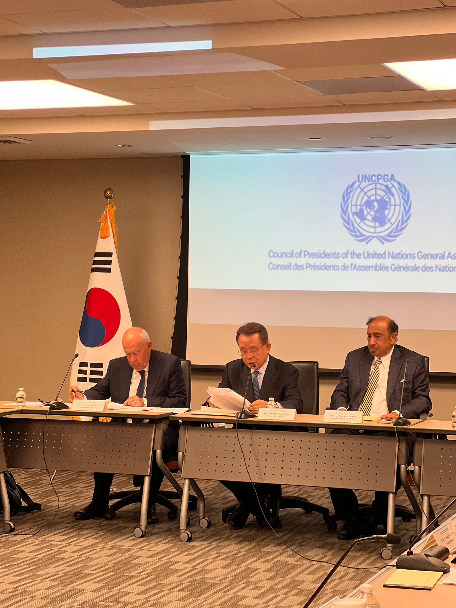 Mariana Todorova, Chair of the Millennium Project’s Bulgaria Node and member of the UN High-Level AGI Expert Panel, also joined the UNCPGA meeting. Together with Glenn, she advocated for the UN to convene a special session on AGI and and the potential risks AGI poses to humanity. Later, they had the opportunity to discuss these topics with the newly elected President of the UN General Assembly, Ms. Annalena Baerbock. The UNCPGA also adopted a declaration that explicitly includes AGI. They also attended the farewell dinner of the UNCPGA alongside distinguished leaders and former UNGA Presidents.