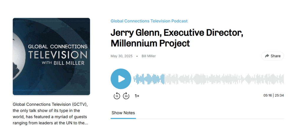 In an engaging new interview released by the YouTube channel Ones Changing The World (1CW) at the beginning of July, 2025, Jerome C. Glenn offers profound insights into the future of Artificial General Intelligence (AGI), the role of futurists, and the urgent need for global governance. Glenn emphasizes the transformative power of AGI and warns […]