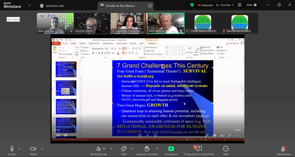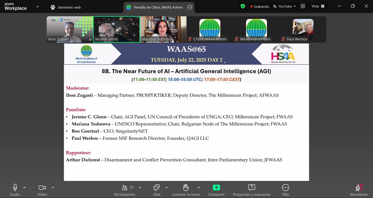 Among the many high-level panels, a major highlight of the conference is a session organized by The Millennium Project on Artificial General Intelligence (AGI) on July 22, 2025. Titled “The Near Future of AI – Artificial General Intelligence (AGI),” the session will address the geopolitical race between the U.S. and China, massive capital investments, and the profound opportunities and risks posed by AGI. The session will be moderated by Ibon Zugasti, Deputy Director of The Millennium Project and Chair of its Spain Node. Speakers will include Jerome C. Glenn, CEO of The Millennium Project and Chair of the AGI Panel of the UN Council of Presidents of the General Assembly; Mariana Todorova, Chair of the Bulgarian Node of The Millennium Project; Ben Goertzel, CEO of SingularityNET and pioneer of the AGI concept; and Paul Werbos, former NSF Research Program Director and founder of QAGI LLC. The session can be accessed on Zoom via this link: Join here