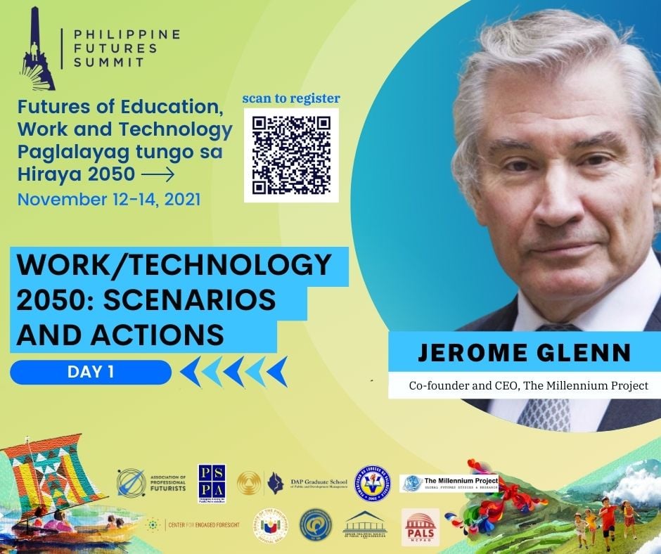 Jerome C. Glenn, MP CEO, is keynote speaker of the event on Day 1, with a speech about “Work/Technology 2050: Scenarios and Actions” in the panel session scheduled on Nov. 12, from 9:15 to 9:55 AM (PST).